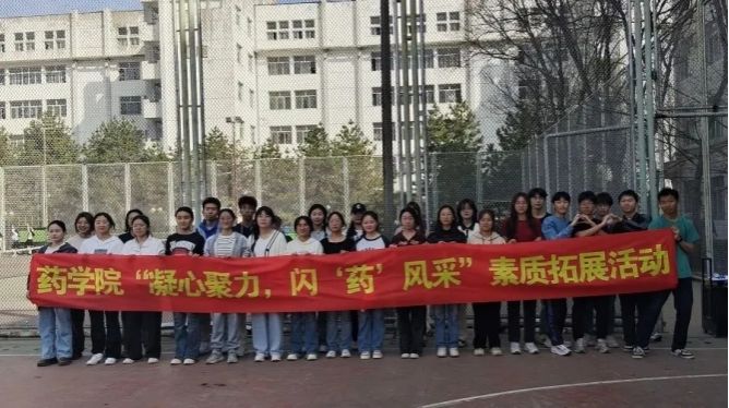 (药学院举办“凝心聚力,闪“药”风采”素质拓展活动,全体青马班学员积极到场参与。)